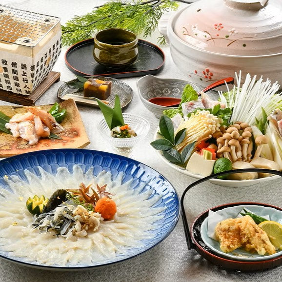 | 原材料 | 【てっさ】トラフグ刺身(標準和名)(生食用)、皮湯引き、【薬味】きざみネギ、すだち、もみじおろし(人参、一味唐辛子)、【ポン酢】本醸造しょうゆ、(小麦・大豆を含む、国内製造)、ゆず果汁、果糖ぶどう糖、砂糖、醸造酢、食塩、かつおぶし、こんぶだし、酵母エキス/調味料(アミノ酸等)、酸味料、【てっちり】トラフグの切身(標準和名)(生食不可)、白菜、しめじ、えのき、みつ菜、人参、絹ごし豆腐、くずきり、きざみネギ、だし昆布、もみじおろし(人参、一味唐辛子)、【つゆ(希釈用)】 しょうゆ(小麦・大豆を含む、国内製造)、糖類(砂糖、ぶどう糖)、食塩、削りぶし(さば、かつお、むろ、うるめ)、発酵調味料、かつおぶしエキス/調味料(アミノ酸等)、アルコール、【味付けぽん酢】 本醸造しょうゆ(小麦・大豆を含む、国内製造)、ゆず果汁、果糖ぶどう糖液糖、砂糖、醸造酢、食塩、かつおぶし、こんぶだし、酵母エキス/調味料(アミノ酸等)、酸味料、【焼きひれ】 トラフグひれ(標準和名) |